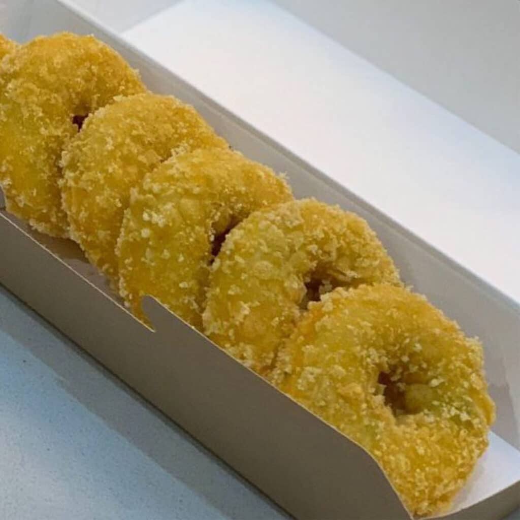 6 aros de queso cheddar y jalapeños con salsa a elegir.