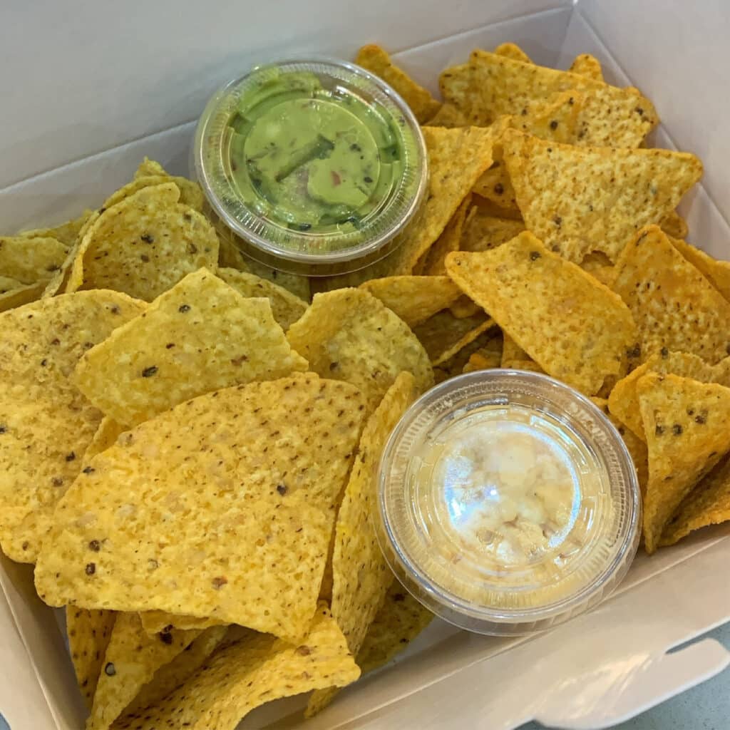 6 triángulos de queso cheddar rebozados en doritos con guacamole.